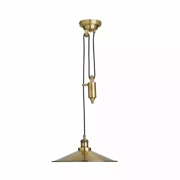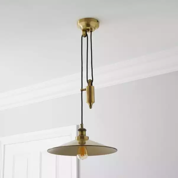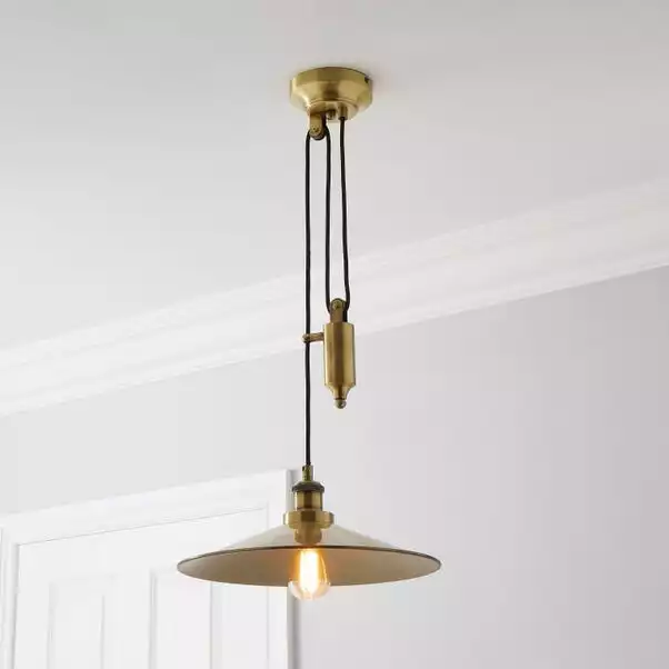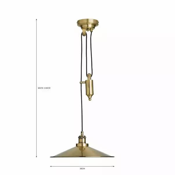 Introducing this stylish Churchgate Ceiling Fitting, beautifully crafted with an adjustable rise and fall feature on a black fabric cable, complete with an Antique Brass shade and metal base. This piece would make a timeless addition to any home and would match an array of home decors, it is also dimmable compatible.