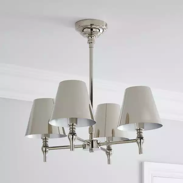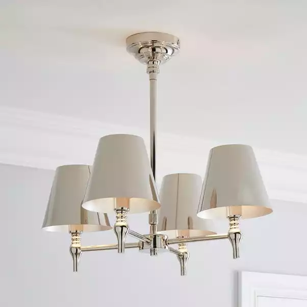 Add a timeless look to your décor with the Dorma Bedford 4 Light Polished Nickel Ceiling Fitting. Exquisitely designed with a modern polished nickel base, paired with four matching polished nickel shades. This ceiling fitting features an adjustable telescopic suspension, so you can choose your desired height and drop to suit your space. Dimmable with a compatible bulb and dimmer switch. Matching Dorma Bedford pieces are available to help coordinate your décor.