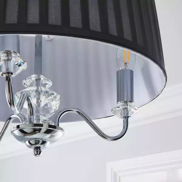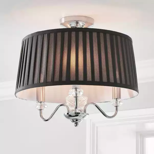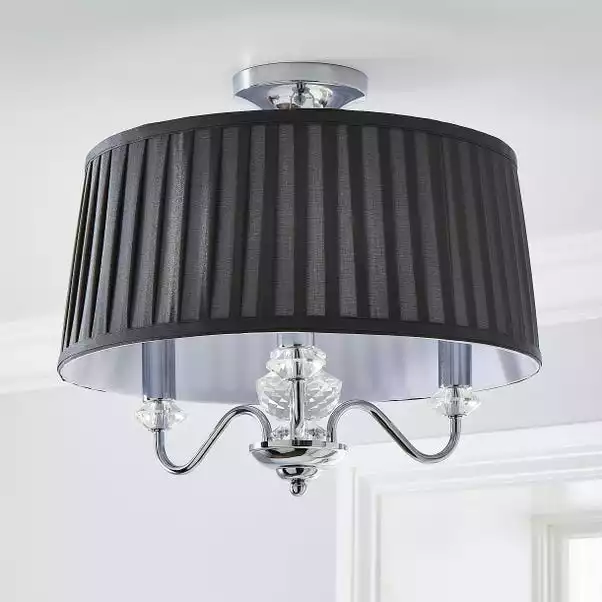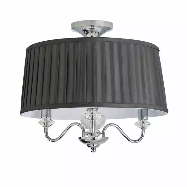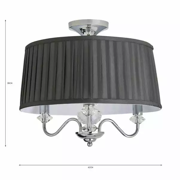 Add a glamorous touch to your décor with the Dorma Genevieve 3 Light Semi-Flush Ceiling Fitting. Exquisitely designed with a modern chrome base, detailed with stunning clear crystals. This luxurious piece is complete with a circular Grey faux silk shade with a double taped trimmed detailed finish. Matching Dorma Genevieve pieces are available to help coordinate your décor.
