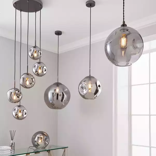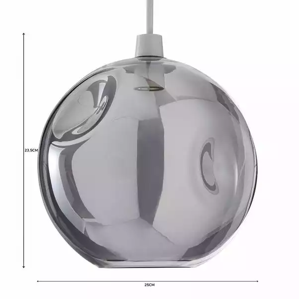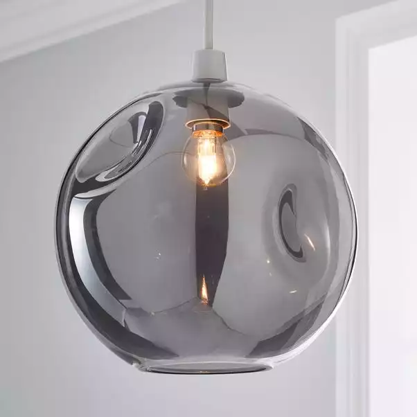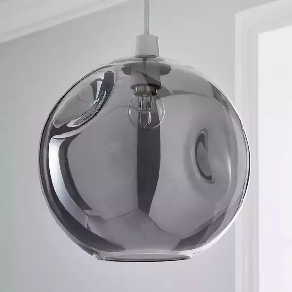 This stunning pendant is the perfect piece to accompany your home, with its easy to fit feature, it is ideal for both renters and homeowners. The luxury look and modern colourway will complement an array of home decors and matching family items and other colours are also available of smokey grey and iridescent silver.