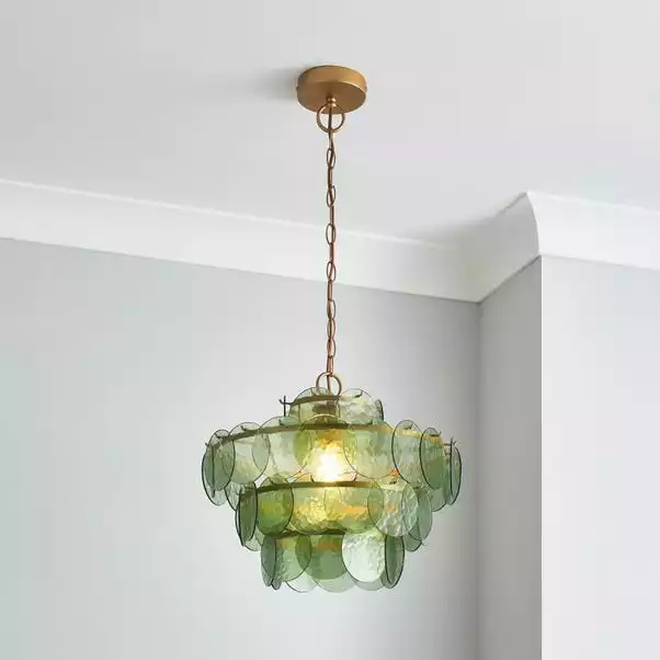 Presenting elegance and beauty, the Alohi 4-tiered chandelier gracefully falls with a gold metal frame and option of rich golden amber hues or refreshing, uplifting green colours. Displayed within the large 44cm diameter, are painted glass discs, arranged in a circular shape and slightly overlapping to create a range of deeper and softer tones. Ideal for any part of the house, this chandelier will look especially complimenting in a living or dining room to bring attraction and charm to the room.