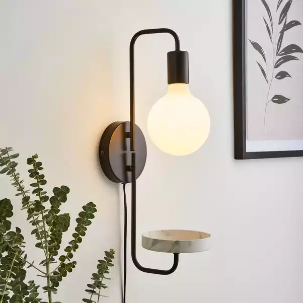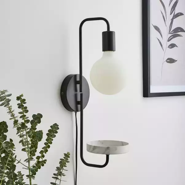 Dunelm Aubrey Exposed Bulb Shelf Wall Light Black And Faux Marble