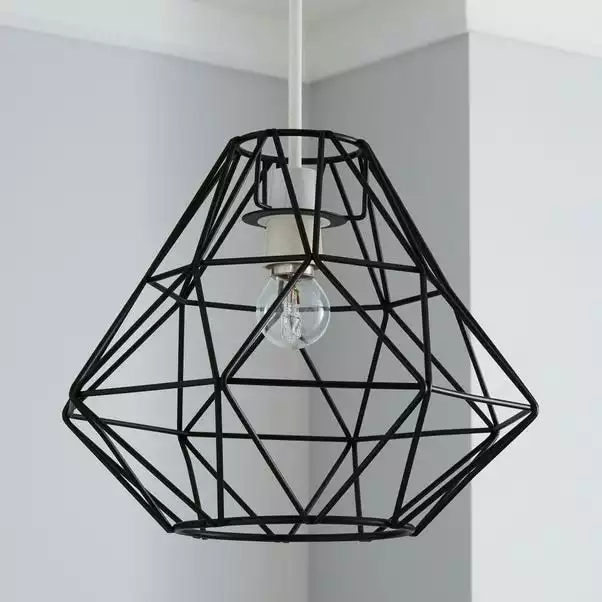 Featuring a contemporary geometric frame this ceiling pendant has one light bulb fitting and is complete with a black painted finish. The modern, industrial design would complement a variety of spaces and is perfect for adding a contemporary touch to your home.