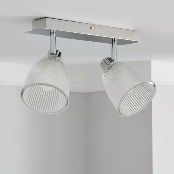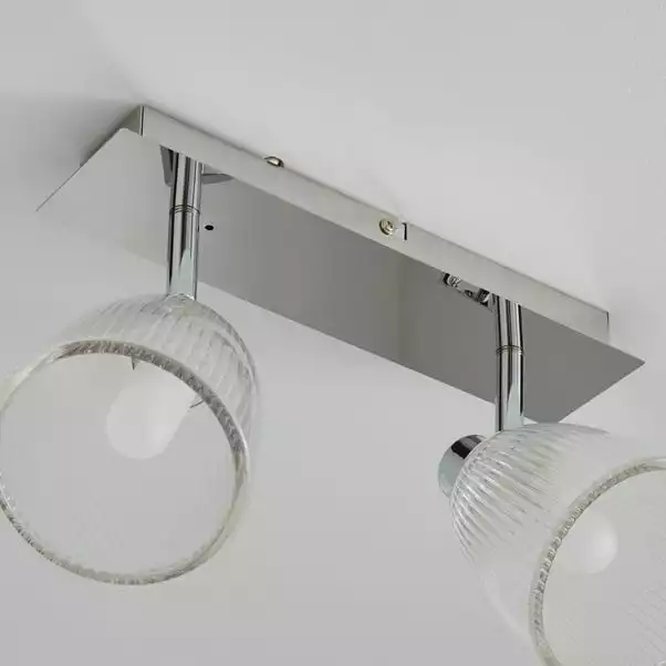 The Bremont Light features dimmable setting, adjustable heads with a stunning ribbed glass design and a chrome finish. Suitable for use in any room of the home.