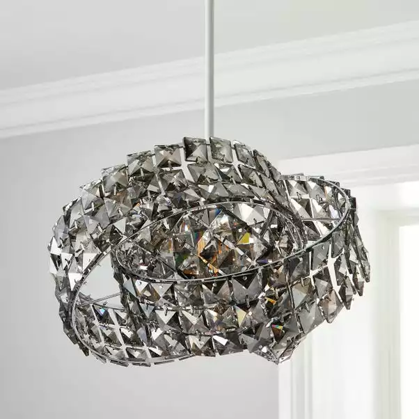 Make a bold statement in your room with this luxurious Cecille easy fit pendant, crafted with real glass crystals and a contemporary chrome finish. The Cecilie is unique in design with three rings that are intertwined around each other, this easy to fit pendant will instantly add a glamorous touch any home décor. This stunning pendant is available in a choice of clear, smoke & champagne crystals.