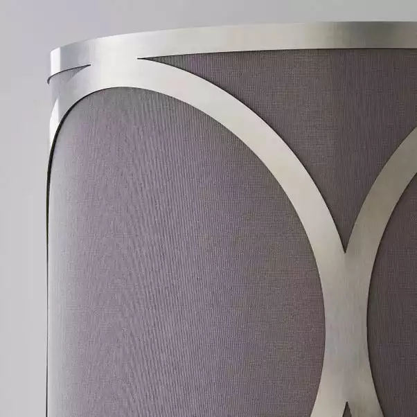 Introduce a modern and unique statement piece to your home with the stunning Delphi Wall Light. Whether it is paired with other pieces from the Delphi Range or hung alone, the simple grey colourway alongside the silver metal detailing will catch the eyes of both you and your guests. It has an attractive look and feel, made from faux silk and metal.