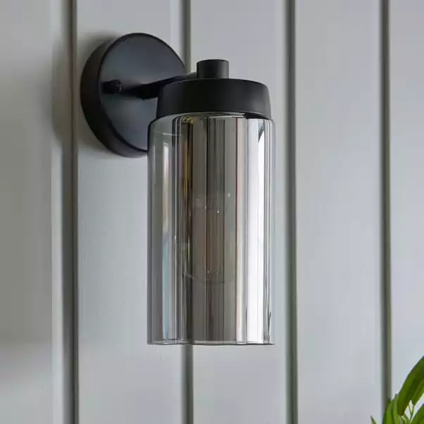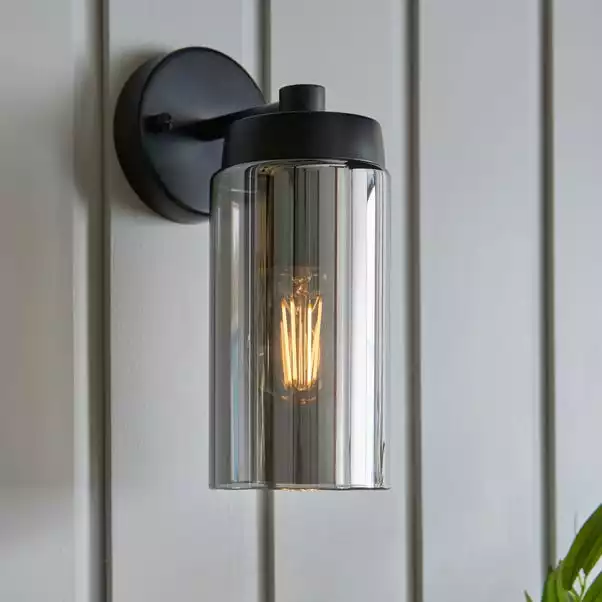 Dunelm Ellison Matt Black Smoked Glass Outdoor Wall Light