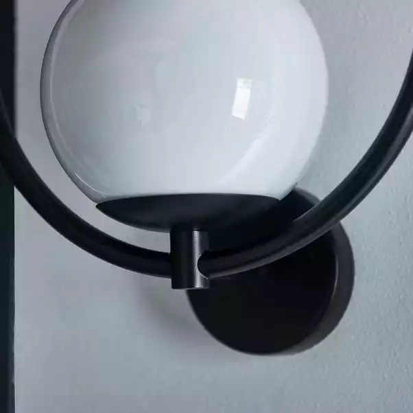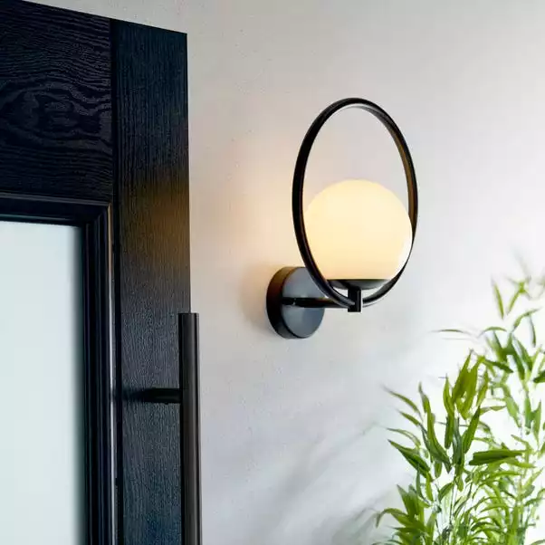 Perfect for lighting up your garden, patio, or even your bathroom, the Fort Halo wall light offers a modern, versatile design that would suit a range of décor styles. This wall light is IP44 rated and features a stunning matt black finish, paired with a stunning opal glass spherical shade.