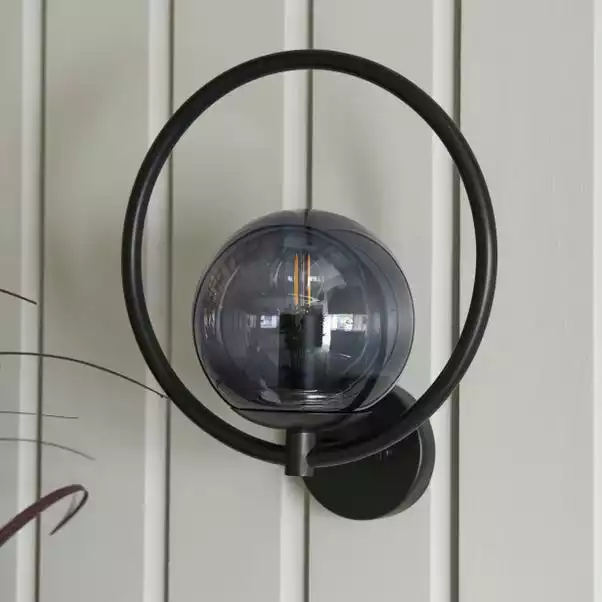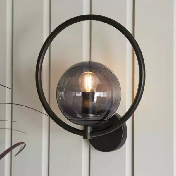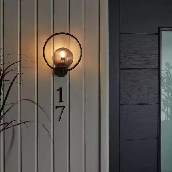 Dunelm Fort Halo Black Smoked Glass Outdoor Wall Light