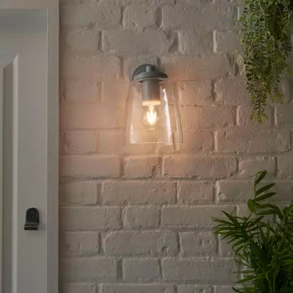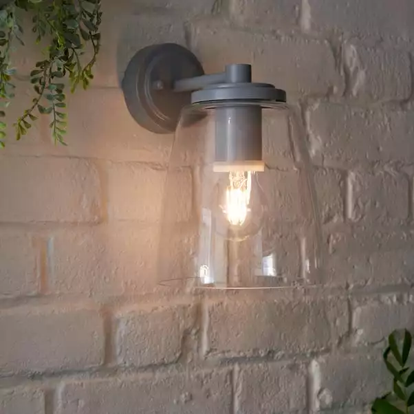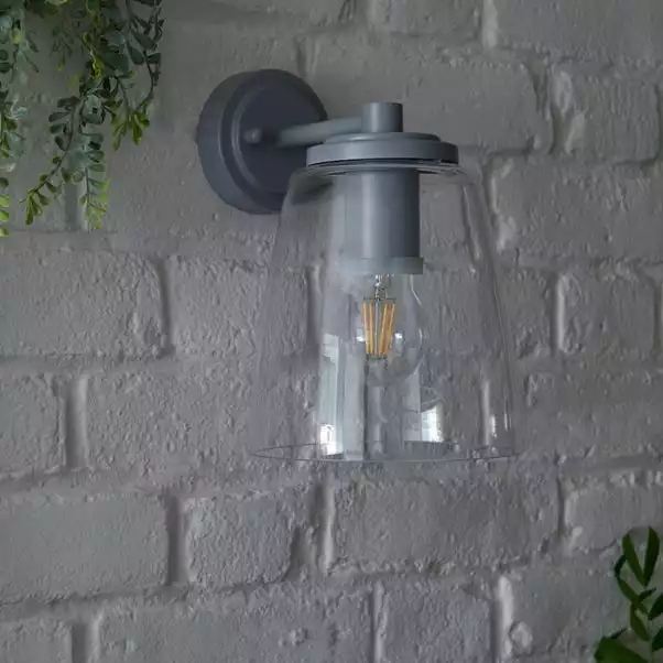 Featuring an understated, elegant design, the Hickory outdoor wall light is a great way to light your outdoor areas, or even your bathroom thanks to IP44 rating. This stylish light fitting is finished in a stylish matt grey, complete with a clear glass shade, perfect for displaying a statement bulb. Matching items are also available to hlep you create a coordinated look.