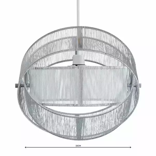 This stunning and eye-catching piece would be a perfect addition to an array of rooms. Featuring a string bead finish with a silver effect detail, this pendant is designed in a unique round shape and constructed from a durable steel material.