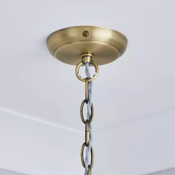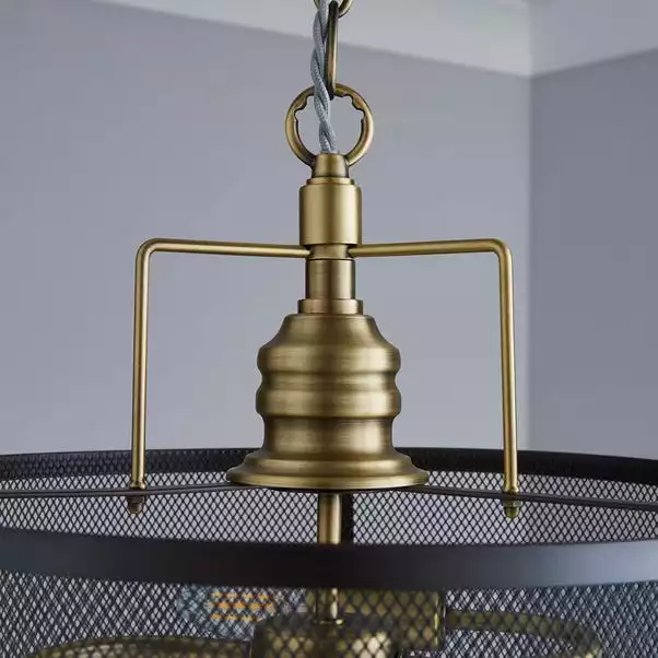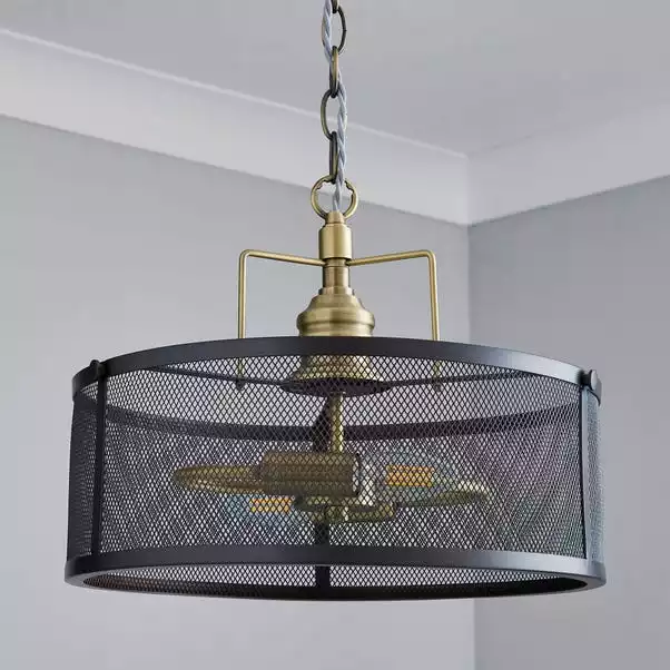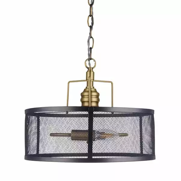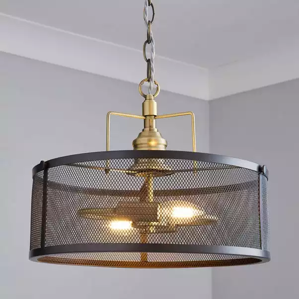 Crafted from salvaged look metal, this ceiling light combines satin brass light fittings with an industrial nickel mesh shade.