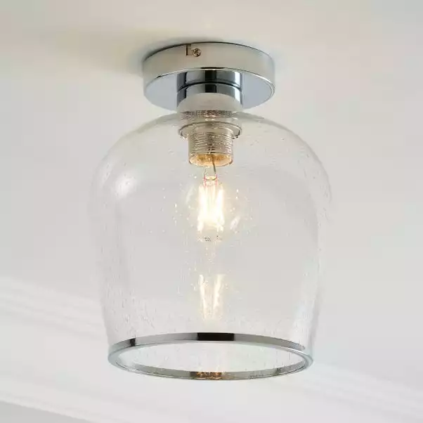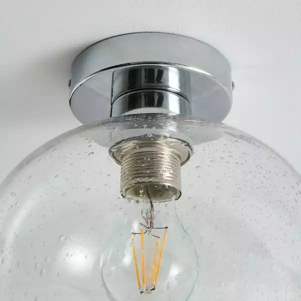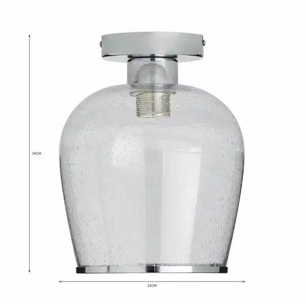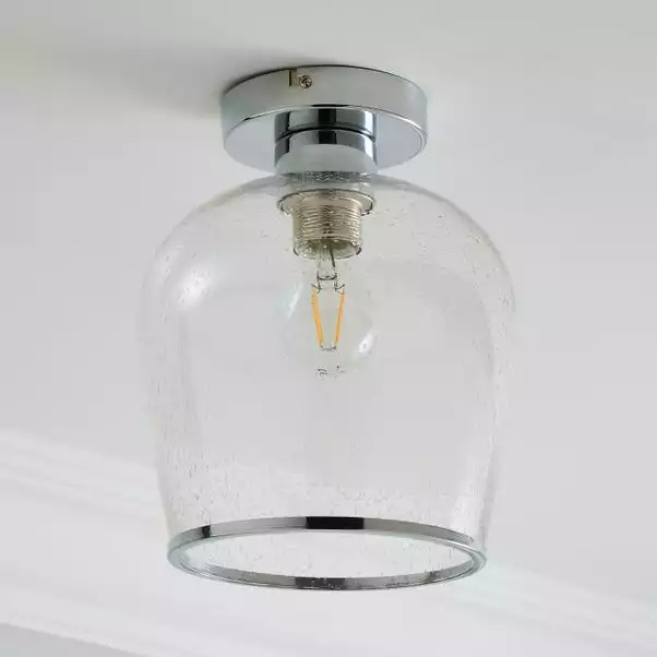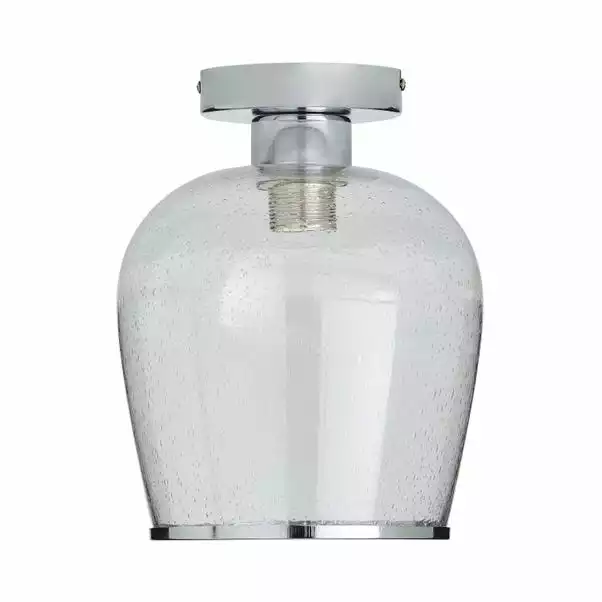 The Lenny Flush Ceiling Fitting has been crafted with bubbled glass and elegant chrome trim for the vintage yet contemporary appearance. A perfect piece for adding a classic look to your home with a modern twist. Perfect for lighting hallways or any other room, this piece is dimmable compatible, with matching items available making it wasy to create a co-ordinated look.