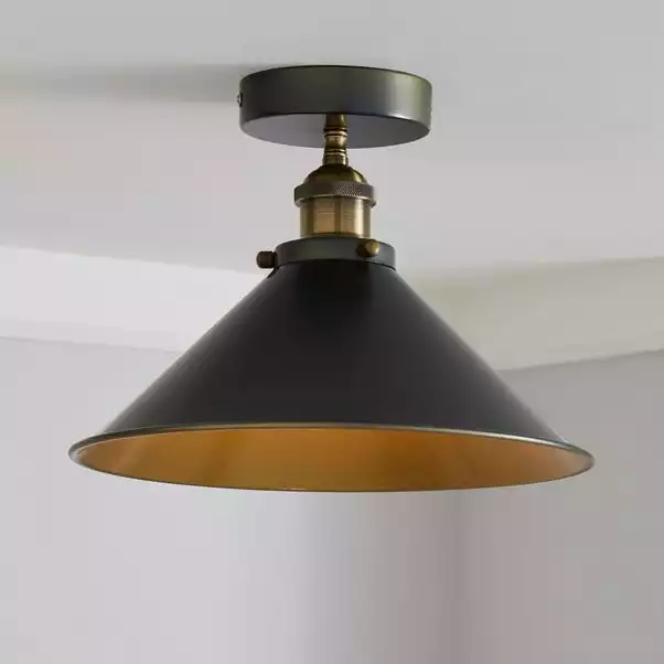 Introduce a contemporary element to your interior with the beautiful Logan Flush Ceiling Light, stylishly crafted with a dark nickel colourway and painted gold in the inner part of the shade for the best light output. A perfect way to add a modern and rustic touch to your décor.