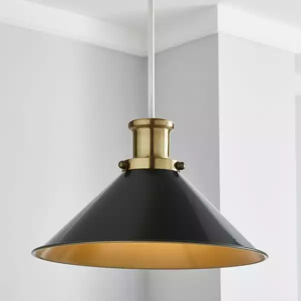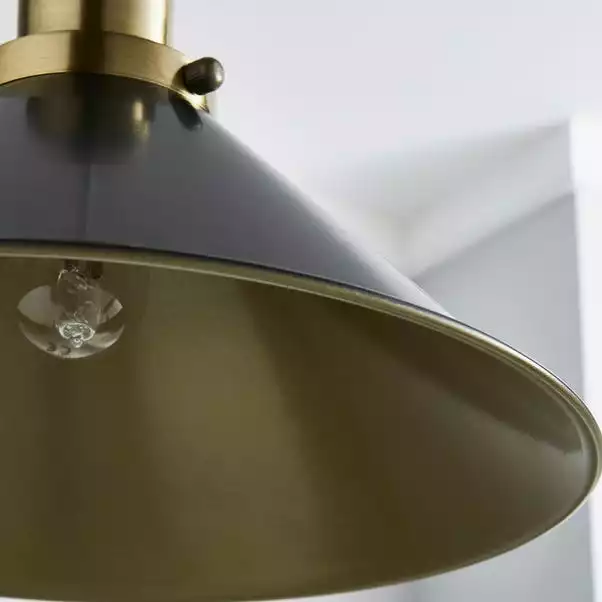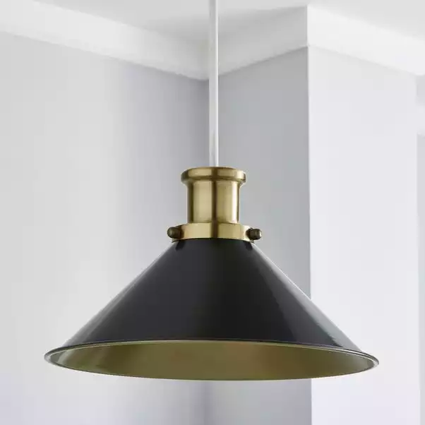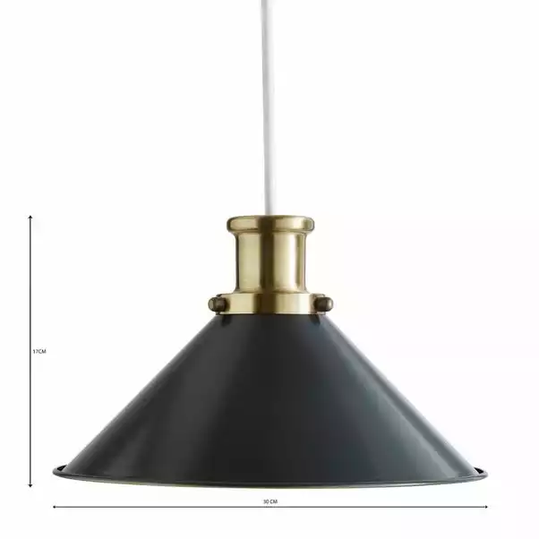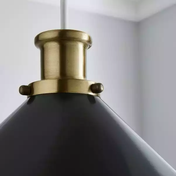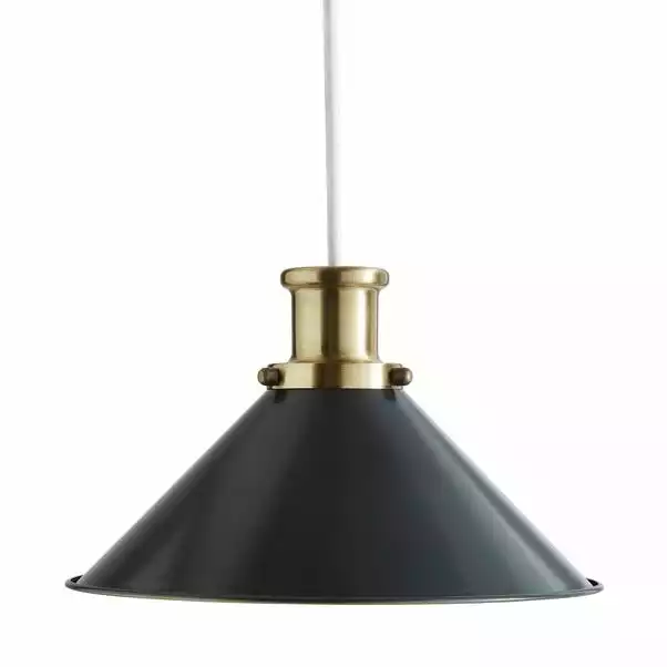 Add this industrial apartment inspired pendant shade to your home to a contemporary touch. The Logan Easy Fit Pendant features a dark nickel painted finish with a lovely antique brass detail.