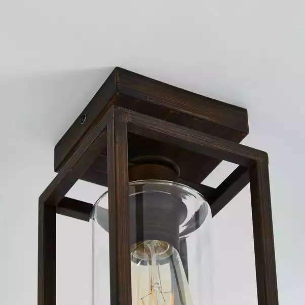 Designed with a bronze painted metal frame, the London Flush Ceiling Fitting would add a modern retro feel to any home. This fitting comes complete with a clear glass shade and a brushed finish to add to the industrial-chic look. This piece is dimmable compatible, making it both an attractive and practical product.