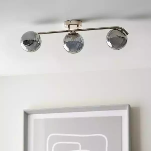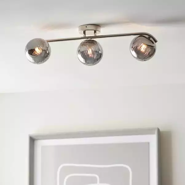 Brighten up your home with this stylish Marie 3 Light Spotlight Bar. This modern light fitting is available in a choice of smoked glass or pink glass ribbed shades, paired with a round metal ceiling cup and straight bar with curved edges, giving this spotlight a feminine look. This spotlight bar is dimmable and available in other colours, with matching family items available to help coordinate your home.