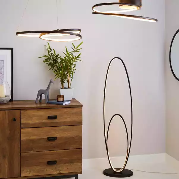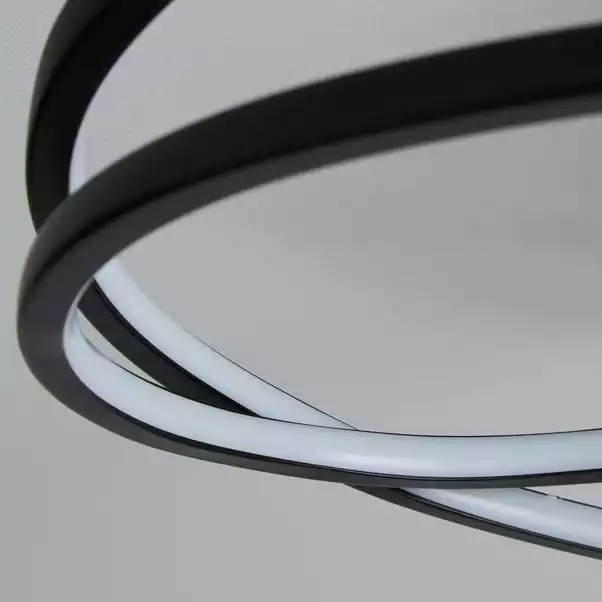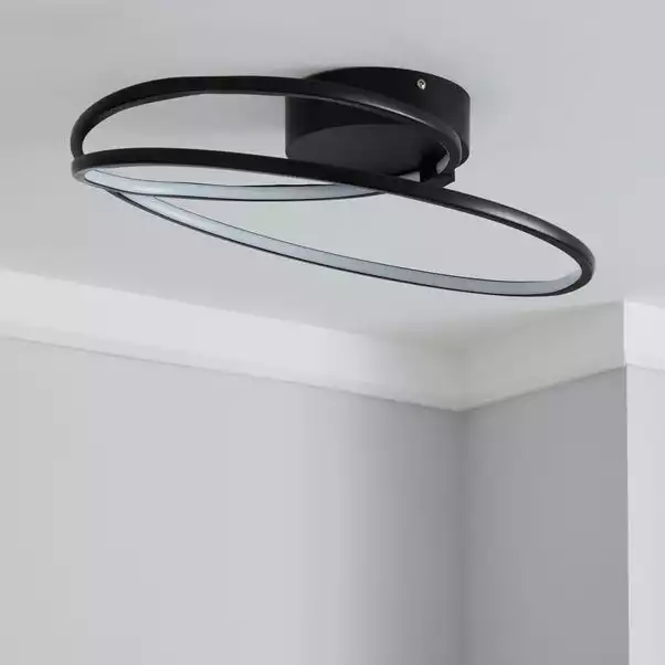 Complete with integrated LED lights, this stunning ceiling fitting features a modern swirl design in a matt black finish. Lighten up your home in a versatile and environmentally friendly way with LED lighting. These integrated LED lights are energy efficient and are compatible with a dimmer switch, allowing you to set the perfect ambience in your home.
