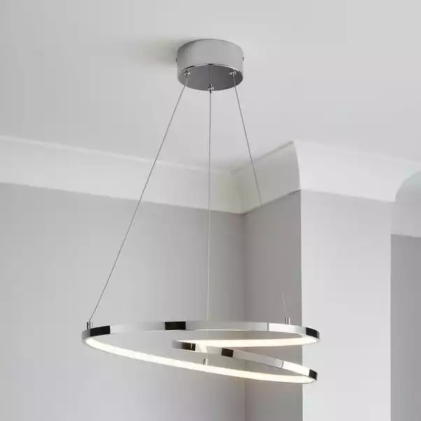 Complete with integrated LED lights, this stunning ceiling fitting features a modern swirl design in a chrome finish. Lighten up your home in a versatile and environmentally friendly way with LED lighting. These integrated LED lights are energy efficient and are compatible with a dimmer switch, allowing you to set the perfect ambience in your home.