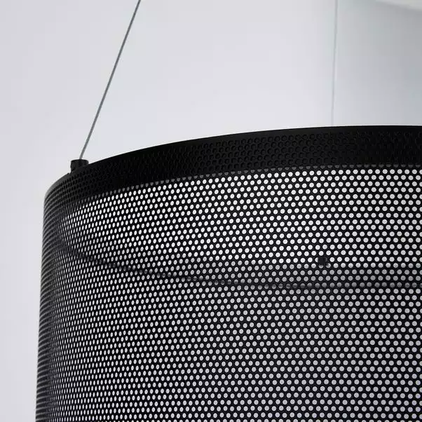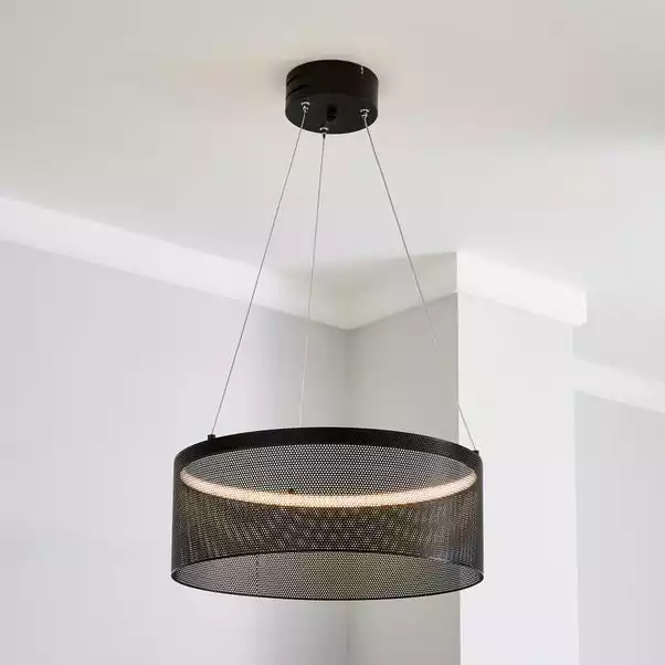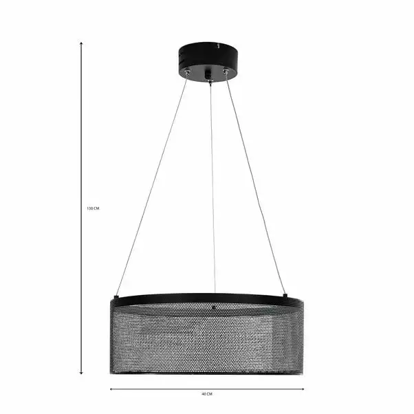 With it’s industrial mesh design, the mesh Black LED Ceiling fitting would add a modern feel to any space. Crafted from a matt black painted metal, this fitting features an integrated LED ring and is height adjustable from 40cm to 130cm.