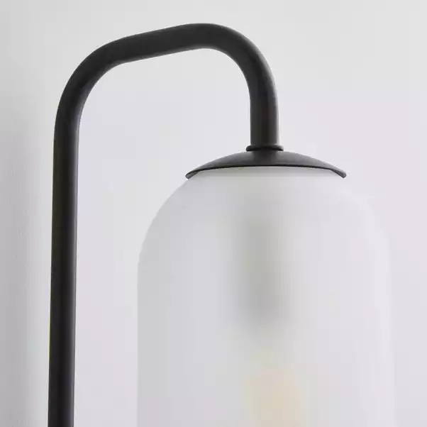 - Frosted glass shade with a black finish