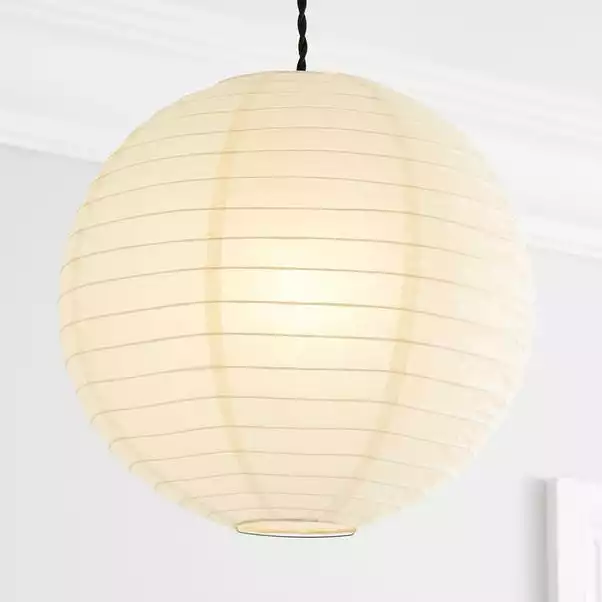 Designed with a ribbed effect pattern. This contemporary light pendant is fashioned from paper in a ball lantern shape. Perfect for adding a simple yet stylish touch to your home, this paper shade is available in a choice of colours and size.