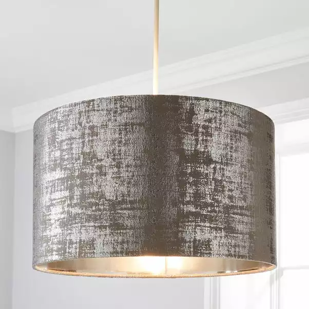 Crafted from a stunning gold metallic velour fabric with a distressed finish, the Romano 40cm drum shade boasts a trendy, oversized design, perfect for enhancing any home décor. This luxurious, easy fit shade comes complete with a metallic gold inner.