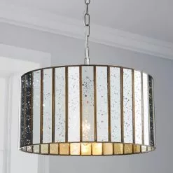 Magnificently crafted in a stunning design, this beautiful dimmable pendant features a gorgeous thin mercury glass panels and sturdy frame with nickel effect finish, a perfect statement piece for any living space.