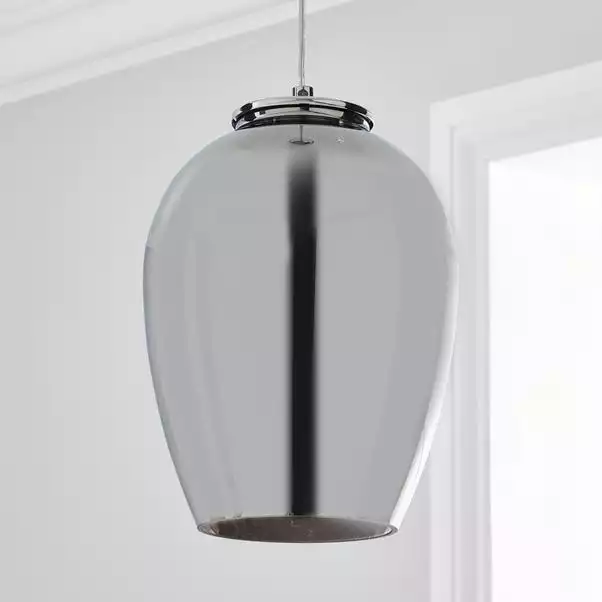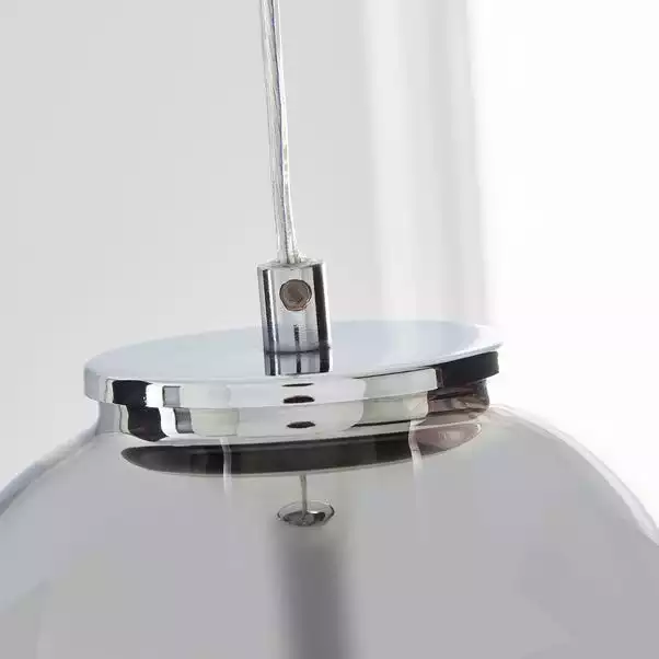 Featuring a smoked finish glass shade the Seychelles Pendant fitting would make a glamorous addition to any room. This stunning light is designed with sleek chrome finished detailing and delicate clear hanging glass droplets, creating a stunning effect.