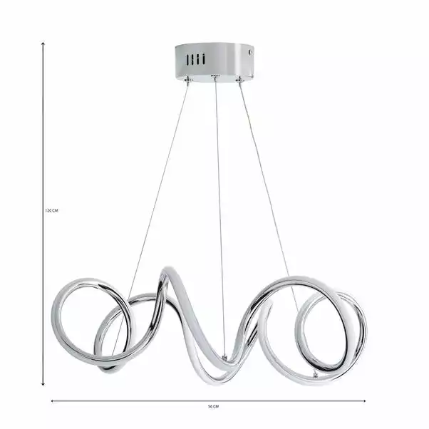n incredible abstract design, the Skylar Curly LED light fitting would make a stunning statement piece for any modern home. Boasting a beautiful chrome finish, this fitting features integrated LED lights, complete with clear flex suspension with adjustable height. Please note this piece is not dimmable compatible.