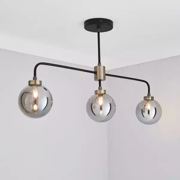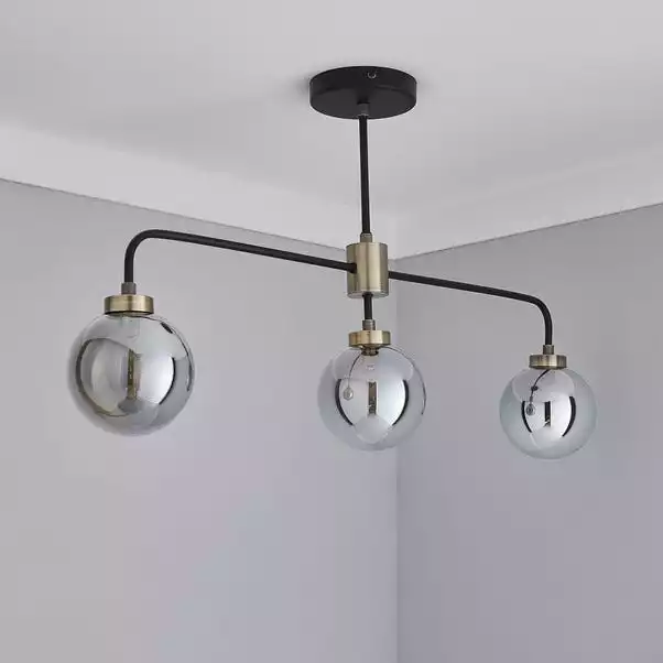 Finished in black, our ceiling light fitting features three glass shades which change colour when the light is switched on. This piece is dimmable compatible, making it both an attractive and practical product.