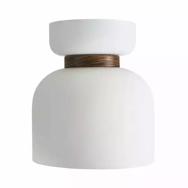 Featuring the Tien Easy Fit Pendant, beautifully designed with a stunning matt opal real glass shade and a walnut wood effect detail in the centre. This easy fit pendant will instantly add a modern and contemporary feel to your home décor. Coordinate your home with matching family items from the Tien range.