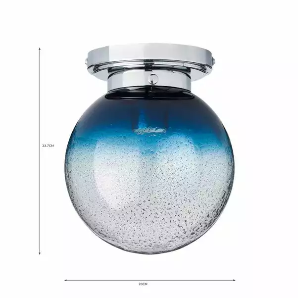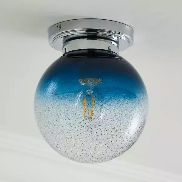 Boasting a modern elegant design, the Torbay ceiling light is perfect for giving any bathroom a new stylish look. This stunning fitting features a delicate round pitted glass shade, complete with a beautiful blue ombre design and paired perfectly with a stylish chrome base to create a bold, modern statement look.