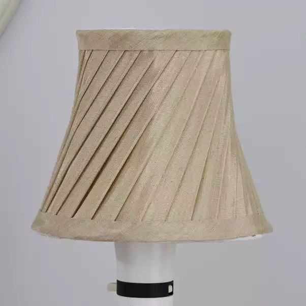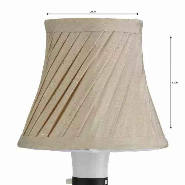 Crafted from satin, this champagne candle lamp shade offers an attractive twisted pleat texture.