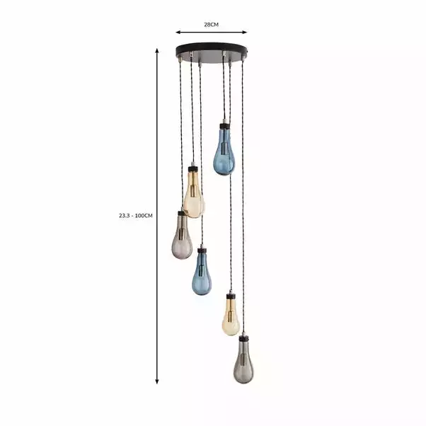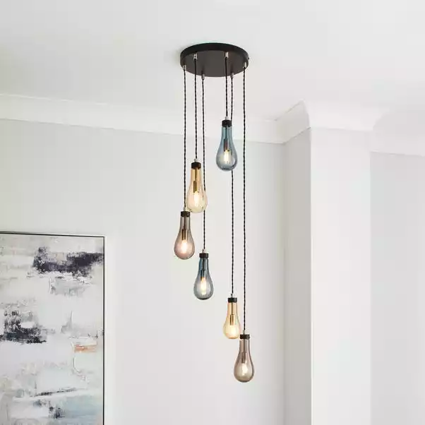Add a subtle pop of colour to your home with our Verne Glass Cluster Ceiling Light, cleverly hand blown in a glass teardrop shape in three gorgeous colours. You can adjust the cable drop length to your taste for a luxurious finish. It’s compatible with a dimmer switch so you can set the perfect ambience no matter the occasion, so whether you’re having a dinner party or a quiet night in, there’s a light setting just for that.