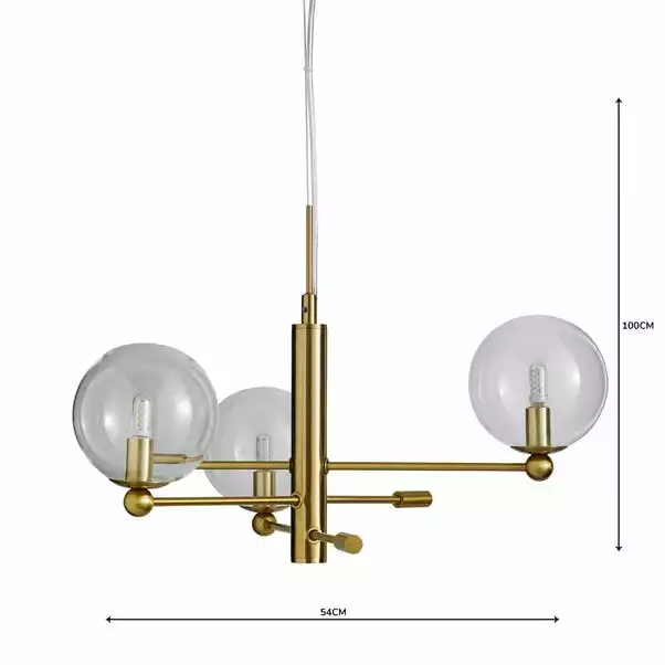 In a antique brass finish and clear glass shades, this 3 light fitting will be a statement piece in your home.