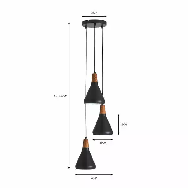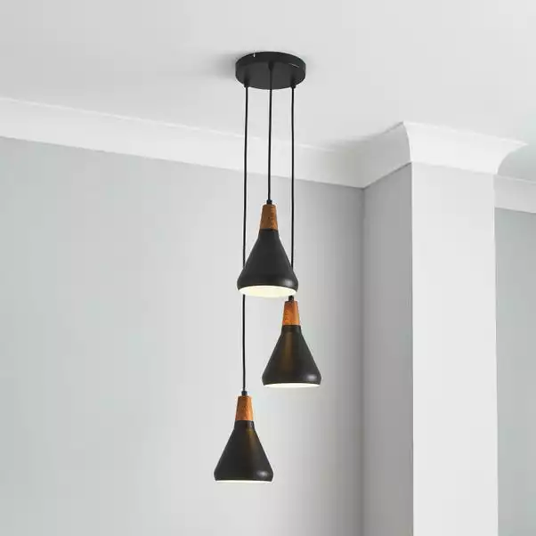 Offering a fresh contemporary design, the Wolston 3 light cluster ceiling is perfect for giving your home a light, scandi feel. Height adjustable from 25cm to 120cm, this stylish fitting features three matching conical shades suspended at different heights, complete with wood toppers for a natural touch. Available in a choice of two colours to suit your home interior space.