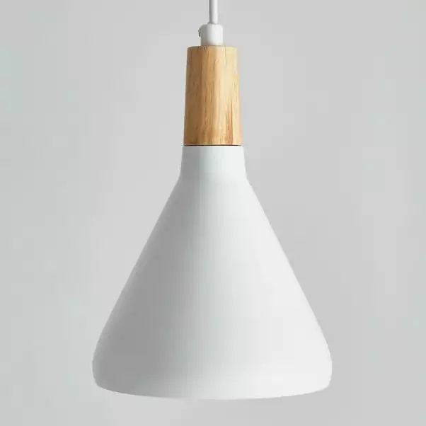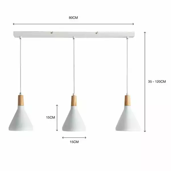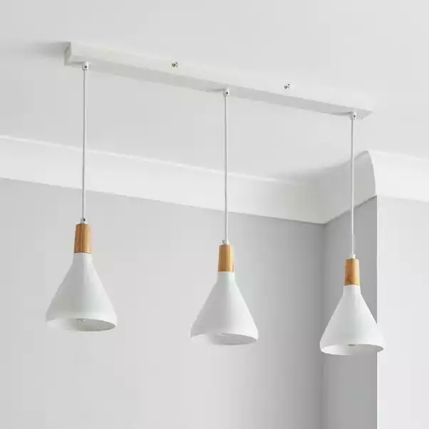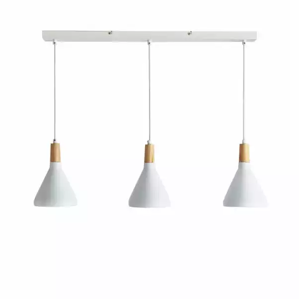 Offering a fresh contemporary design, the Elements Wolston 3 Light Diner Ceiling Fitting is perfect for giving your home a light, scandi feel. Perfect for dining rooms or kitchens, this stylish fitting features three adjustable white conical shades and an adjustable heads, complete with light wood toppers for a natural touch.