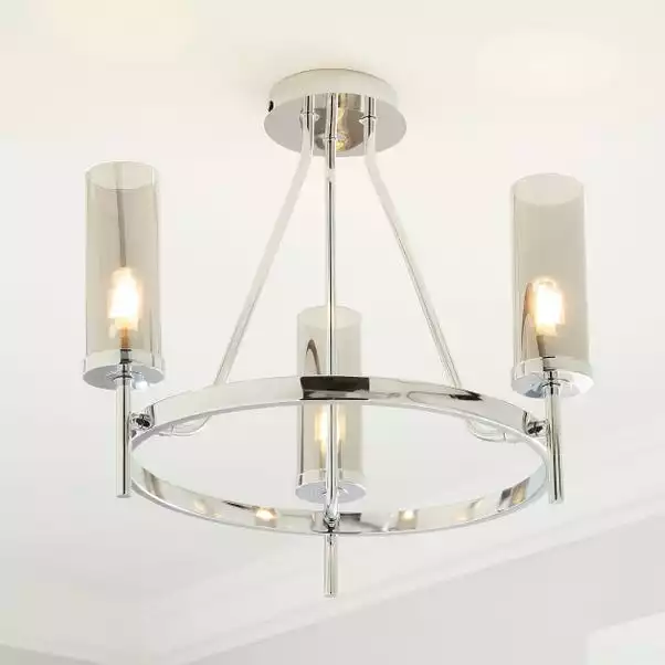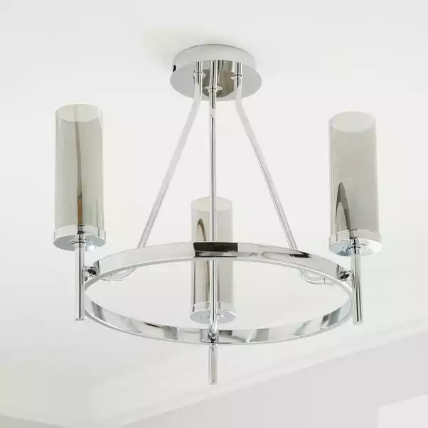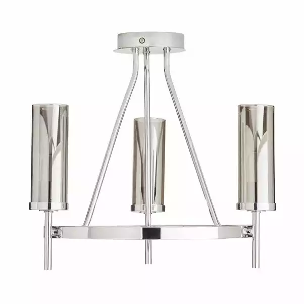 Offering a modern luxe design, the Chelsea ceiling fitting is a great to give your bathroom a more luxurious and opulent feel. This stunning light fitting features a brushed chrome fitting, styled with complementing smoked glass cylindrical shades for a sophisticated touch. Matching items are also available for you to create a co-ordinated look.