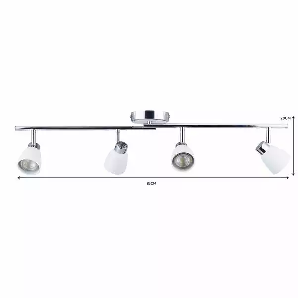 Featuring a straight bar in a chrome finish, this ceiling light fitting features four adjustable LED spotlights with sophisticated matt white shades.