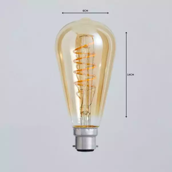 Made with clear glass, complete with a fun spiral filament, this highly efficient 4 watt LED filament bulb features a bayonet cap fitting and lasts up to 15,000 hours, providing instant warm white at the flick of a switch.