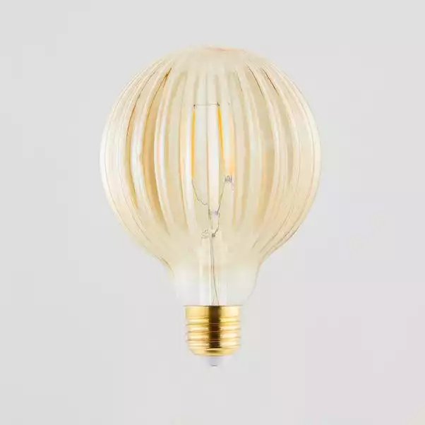 This extra warm white bulb has an amber glass colourway and an elegant ribbed moulding that will complement an array of home decors. Not only is it a decorative feature light bulb, but it also has low energy consumption, making it both practical and attractive.