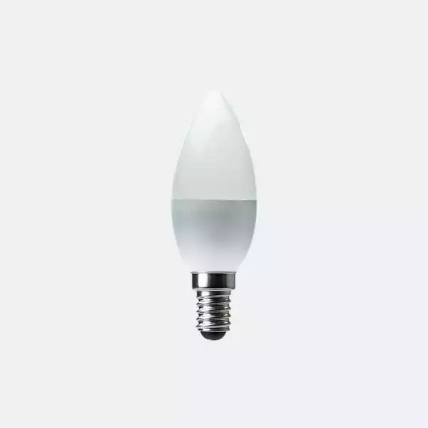 Designed with a candle shape this bulb uses an LED filament for energy efficiency, the bulb generates 470 lumens in a warm white colour and lasts for up to 25,000 hours.