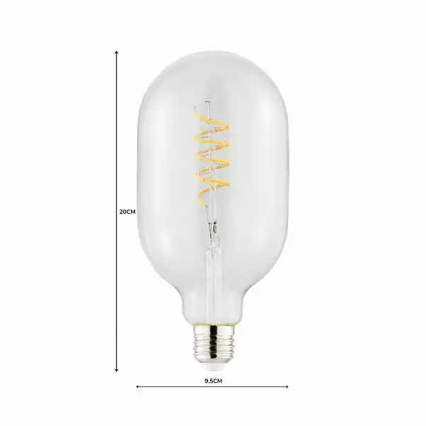 This bulb has a warm white colourway and a chrome to clear gradient look that will complement an array of home decors. Not only is it a decorative feature light bulb with a spiral filament, but it also has low energy consumption, making it both practical and attractive.