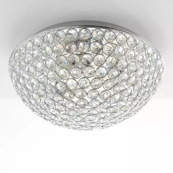 Add a touch of glamour to your home with this beautiful three light bathroom ceiling flush. This modern chrome plated dimmable light is designed with a sleek and clear crystal glass detailing that goes perfect for any interior. This IP44 rated light is a great addition to give your home decor a modern yet timeless element.