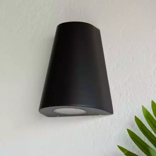 Light up the exterior of your house with the ultra-modern and impressive design of the Bryce Outdoor 2 Wall Light. Perfect to display as effortless decoration with fantastic functionality outside your front door, this lighting features 2 lights, one above and one below for a glowing showcase effect. Constructed from corrosive resistant aluminium and a textured black finish on the metalwork, this lighting has a IP44 rating and is suitable for outdoor use. This piece can be combined with other items in the Bryce range for a synchronised look.