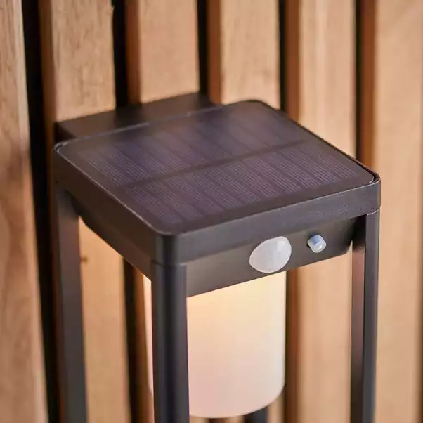 The perfect way to add a contemporary element to the exterior of your home with the Clayton Outdoor Solar PIR Wall Light, constructed from robust corrosive resistant aluminium with a sleek and stylish design. This contemporary piece of lighting is suitable for outdoor use with an IP44 rating and encapsulated inside the solid structure of the textured black aluminium sits a subtle white diffuser for a comfortable glow.
