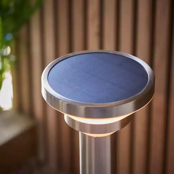 Light up your walkway or garden path with the Leif 50cm Outdoor Solar PIR Floor Light for a sleek, clean and modern style. This modern post style lighting comes complete with a built in PIR and Photocell sensor as well as solar powered functionality and a IP44 rating to ensure outdoor suitability. The brushed stainless-steel construction offers a fresh and smooth look and can be combined with other items of outdoor lighting in the Leif range for a synchronised and coordinated look.