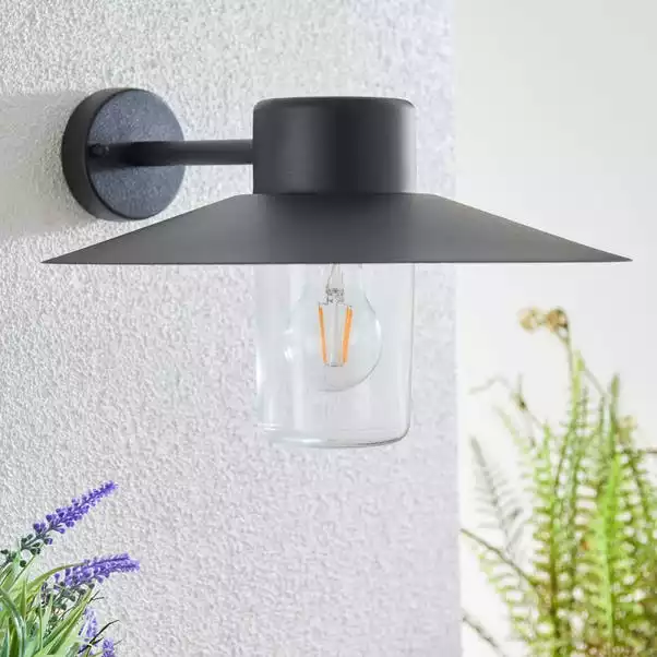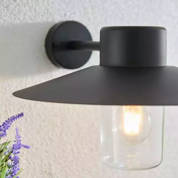 The Sloan Outdoor Wall Light provides clarity and style with a modern lantern design, textured black finish metalwork and sturdy stainless-steel construction. Safe for outdoor use with a IP44 rating, this modern and minimal design will effortlessly brighten the exterior of your house.