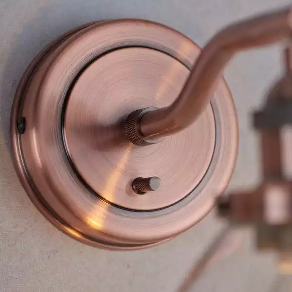 Introducing a modern retro style wall light, the Vogue Tobermory is beautifully finished in an aged copper plating, perfectly detailed with an authentic knurled lamp holder and a clear glass shade. This dimmable piece features an adjustable knuckle and accessible on/off switch, making this a practical and stylish wall light for your home. Pair this trendy piece with a Filament LED lamp for that perfect industrial style.